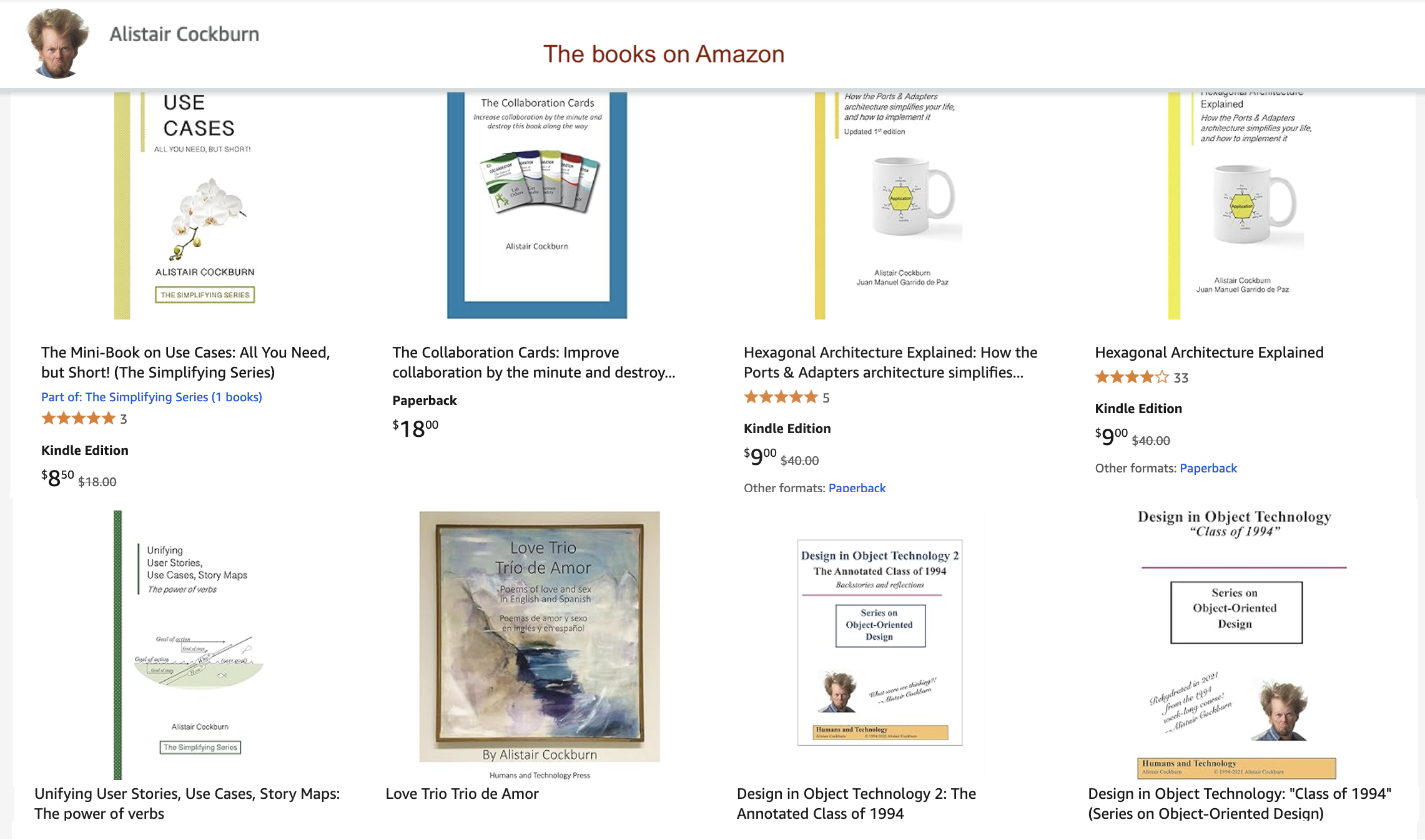 "Technology should help humans interact, relax and prosper. I bring organizations closer together by doing work with them, by increasing trust, reducing fear, and making honest progress. Humans and Technology is my company name for good reason." --Dr Alistair Cockburn